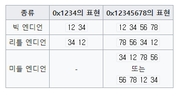 바이트 순서는 크게 빅 엔디언과 리틀 엔디언으로 나눌 수 있다.